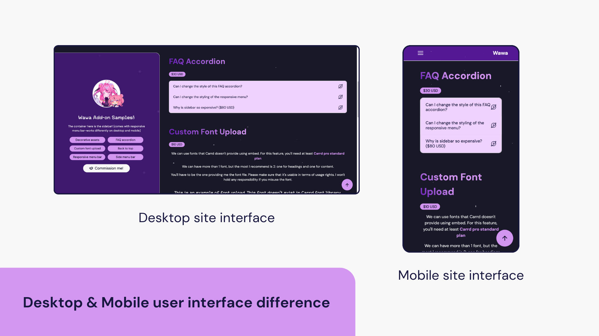 We can use fonts that Carrd doesn't provide using embed. For this feature, you'll need Carrd pro plus planWe can have more than 1 font, but the most I recommend is 2: one for headings and one for content.You'll have to be the one providing me the font file. Please make sure that it's usable in terms of usage rights. I won't hold any responsibility if you misuse the font.